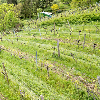 Die schon vor 1950 gepflanzte Steingasse ist unser ältester Weingarten. Mit viel Handarbeit wird der alte Drahtrahmen mit seinen Holzstehern jedes Jahr gepflegt und repariert. Die zum Teil in Terrassen angelegten Rebzeilen sind in dieser Weingegend hier bereits eine Seltenheit. Eine große alte Trockensteinmauer fasst die Terrassen ein und bietet unserem liebsten Gast – der Smaragdeidechse – ein Zuhause und sorgt für Abwechslung in der Weinbaulandschaft.